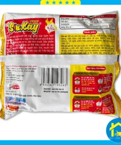Bột mì, tinh bột khoai mì, dầu cọ, chất làm dày (1440), muối, đường, nước mắm, chất tạo xốp (500(ii)), chất ổn định (451()), bột nghệ, phẩm màu curcumin tự nhiên, chất chống oxy hóa (320, 321). – Các gói gia vị: